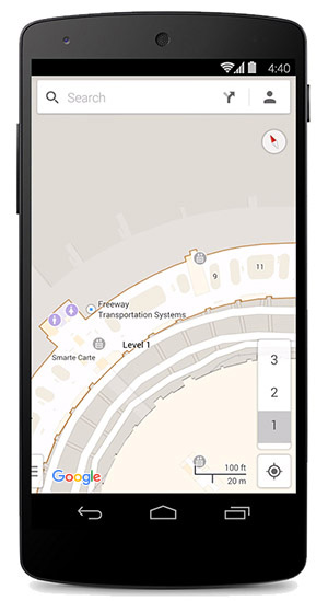 Com o Google Maps interior, os visitantes podem passar menos tempo a pesquisar diretórios de edifícios e mais tempo a descobrir novos pontos de interesse. Basta aumentar ou diminuir o zoom e andar de andar em andar com os mapas interiores.
